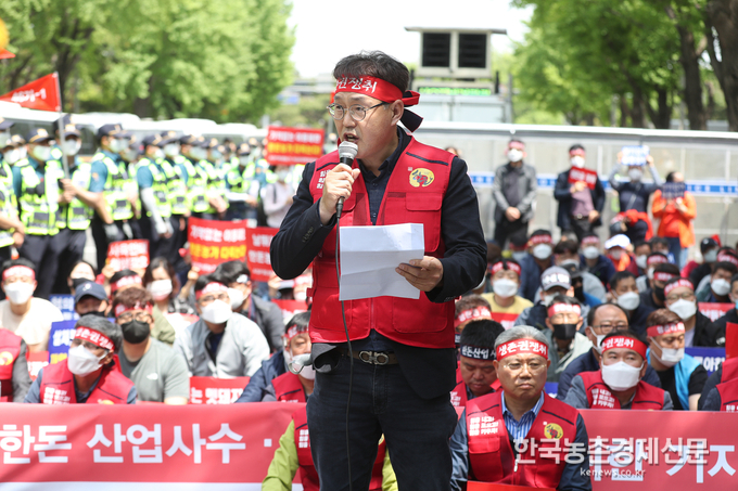 대한한돈협회(회장 하태식)는 5월 11일(월) 청와대 사랑채 분수대 앞에서 한돈산업 사수·생존권 쟁취 기자회견을 갖고, 무기한 1인 시위와 천막농성에 돌입했다.