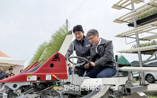 서효원 농촌진흥청 차장이 21일 경남 함양군 양파 육묘재배 현장에서 기계정식용 모종의 노지 생산 기술을 점검하고 있다. <함양= 나남길 kenews.co.kr>