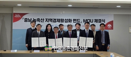 농업정책보험금융원(원장 서해동)은 충남지역경제활신기술성화펀드(충남미래혁투자조합) 결성(100억원) 시기에 맞춰 11월 19일 충남도청에서 지역기반 농식품기업 발굴 및 투자 등을 지원하기 위해 충남도, 충남테크노파크, 충남경제진흥원 간 업무협약식을 체결했다고 밝혔다.