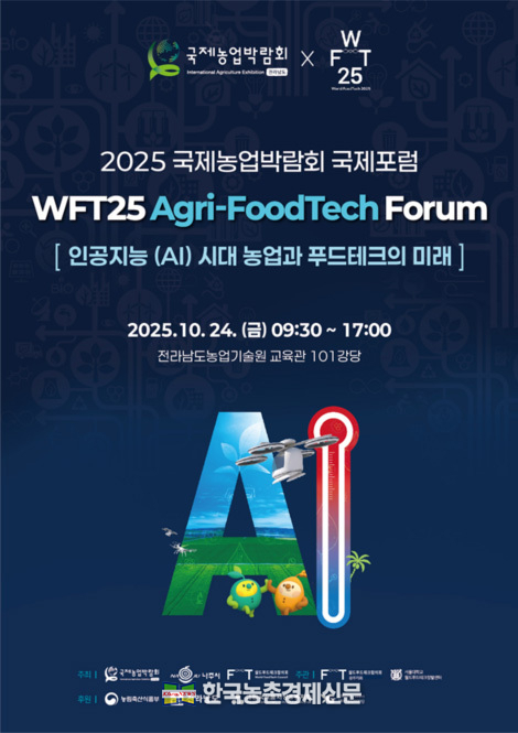 (재)전라남도국제농업박람회(대표이사 김행란)는 2025년 10월 24일(금)에 전라남도농업기술원 대강의실에서 ‘2025 World Agri-Food Tech Forum’이 열린다고 밝혔다.