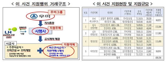 공정위 조사 결과, 우미그룹은 2017년부터 12개 공사 현장에 총 4997억 원 규모의 공사를 실적이 없던 5개 계열사에 '비주관시공사' 형태로 제공했다. 지원 대상 계열사는 공사 역량이나 사업 기여도와 무관하게 관련 세금을 가장 적게 내는 업체를 우선으로 그룹 본부가 계획적으로 선정했다.