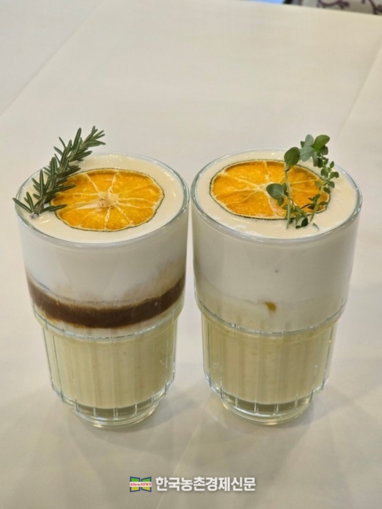 수상작은 국산 우유의 풍미를 창의적으로 해석한 메뉴들이 두드러졌다. 먼저 대상은‘더리얼’의 ‘청귤크림카페라떼’가 선정되었다.
