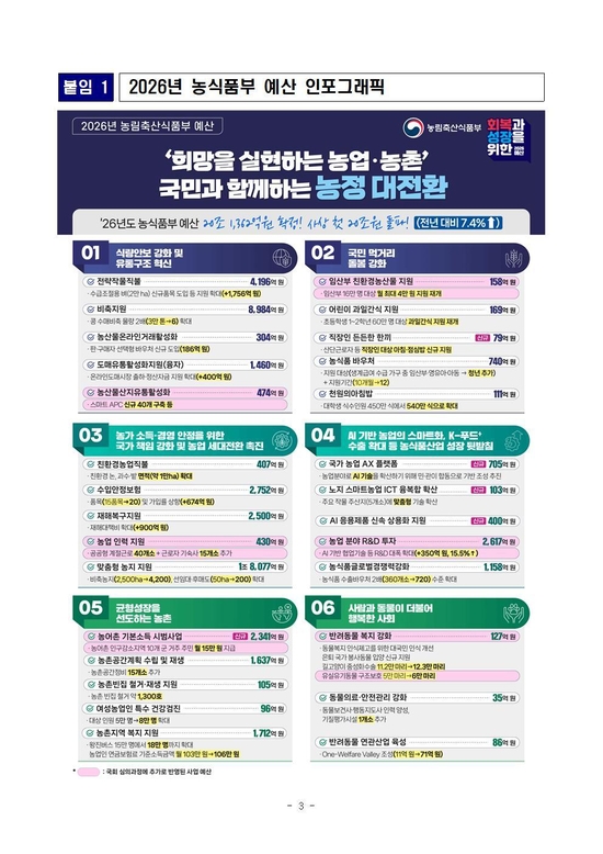 농식품부는 확정된 예산이 적기에 집행될 수 있도록 사업 추진에 필요한 절차를 신속히 이행하는 등 ’26년 예산집행 준비에 만전을 기할 계획이다. 나남길 kenews.co.kr
