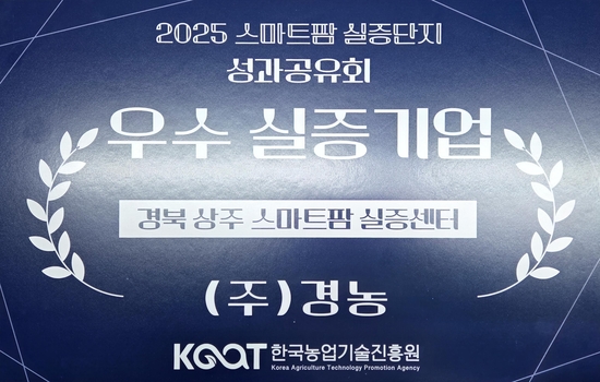 ㈜경농이 한국농업기술진흥원이 운영하는 스마트팜혁신밸리 실증단지에서 2025년 우수실증기업으로 선정됐다. 우수실증기업은 당해년도 실증시험에서 기술 혁신성과 실증 성과가 탁월한 기업을 대상으로 선정되며, 스마트팜 산업의 기술 경쟁력을 가늠하는 주요 지표로 평가된다.