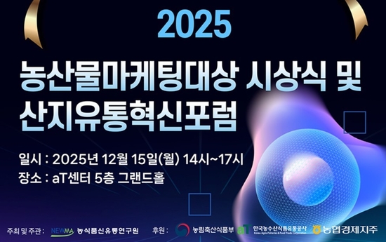 (사)농식품신유통연구원(이사장 원철희, 원장 김동환)은 12월 15일(월) aT센터 그랜드홀에서 ‘2025년 농산물마케팅대상 시상식’을 개최했다.