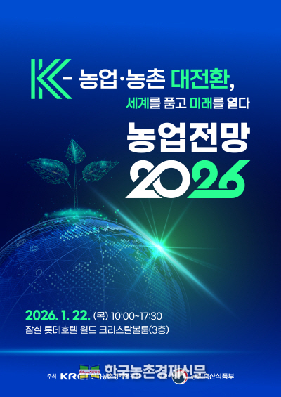 1월 22일 열리는 ‘농업전망2026’은 “K-농업·농촌 대전환”이라는 테마를 가지고 ‘세계를 품고 미래를 열다’를 주제로 행사가 열리게 된다(농업관측센터 공식 유튜브를 통해 온라인 생중계도 예정).