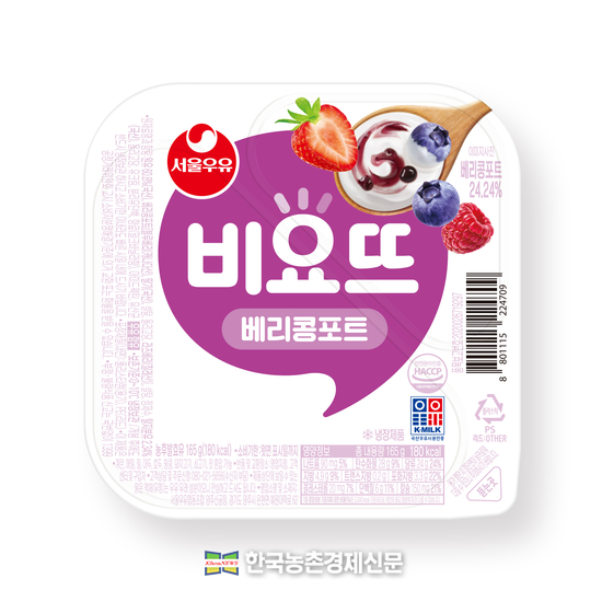 서울우유협동조합(조합장 문진섭)이 고품질 원유에 블루베리, 라즈베리, 스트로베리 등 세 가지 베리를 더한 믹스베리 콘셉트의 신제품 ‘비요뜨 베리콩포트(165g)’를 출시한다.