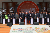 이승돈 농촌진흥청장은 20일 제주도 서귀포시농업기술센터 일원에서 열린 '2025 제주감귤박람회' 개막식에 참석해 축사를 하고 전시장을 관람하고 있다.<사진= 농촌진흥청 kenews.co.kr>