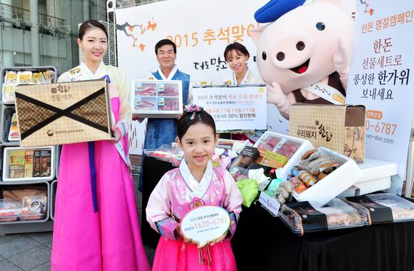한돈자조금관리위원회(위원장 이병규)는 추석을 맞이하여 2015 한돈 추석선물 세트를 알리기 위한 한돈 명절 캠페인 행사를 9월 7일 진행했다. 한돈자조금이 매년 진행하고 있는 명절캠페인은 건강한 우리돼지 한돈을 가족, 이웃과 함께 나누는 선물 문화 창출을 이끌어내기 위해 2010년부터 진행해온 행사다.