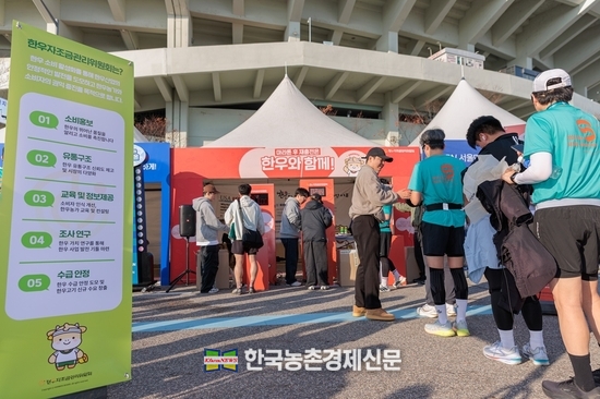 MBN 서울마라톤은 MBN 매일경제가 주최한 시민 스포츠 축제로, 한우자조금은 ‘마라톤 후 재충전은 한우와 함께’라는 메시지를 중심으로 신체적·정신적 웰니스를 추구하는 러너들에게 한우의 건강한 가치를 전달했다. 완주 직후 간편하게 즐길 수 있는 고단백 영양간식인 한우육포를 제공함으로써, 한우가 체력 회복에 제격이라는 점을 자연스럽게 경험하도록 했다.
