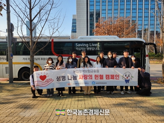 농업정책보험금융원(원장 서해동)은 20일 여의도청사 앞에서 국민건강보험공단 서울강원지역본부(본부장 이용구)와 공동으로 ‘생명나눔 헌혈 캠페인’을 이어가고 있어, 관심을 끌고 있다.