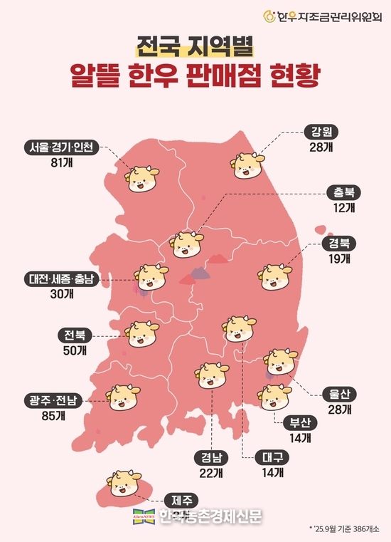 이번에 발표된 매장은 전국 정육식당 181개소와 저가 한우 프랜차이즈 ‘꾸석지돌판한우’ 205개소를 포함해 총 386개소가 선정됐다.