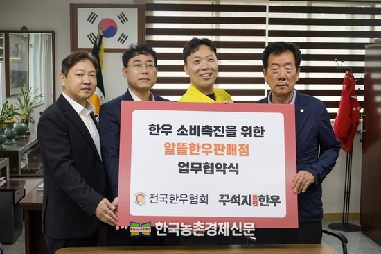 또한 전국한우협회는 알뜰한우판매점 활성화를 위해 지난 9월 18일 ‘꾸석지돌판한우’와 업무협약을 체결하고 한우 소비확대를 위해 공동 노력하기로 했다. ‘꾸석지돌판한우’는 유통 단계를 최소화해 합리적인 가격 경쟁력을 확보하여, 한우 1등급 등심을 100g당 9,800원에 제공하고 있다.