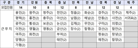 선발인원은 올해(40명)보다 2배 이상 증가한 88명이며, 근무 지역은 전국 44개 시군 가운데 1곳을 선택할 수 있다.