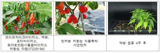 이와 함께 고추 탄저병을 접종한 후 디엔에이(DNA) 유전형을 분석해 저항성 자원을 선발하고, 탄저병에 강한 품종인 ‘시넨탄저’를 식물특허로 출원했다. 역병 접종 평가와 유전형 분석으로 고추역병 저항성 5자원도 선발했다.