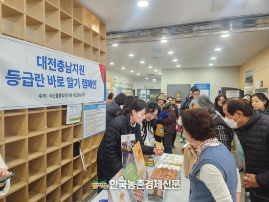 축산물품질평가원 대전충남지원(지원장 선창완)은 지난 25일 소비자단체 (대전세종 소비자공익네트워크)와 협력하여 ‘등급계란 인식 제고 캠페인’을 진행했다.
