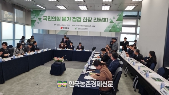 국민의힘이 aT 농수산물온라인도매시장과 농협하나로마트 등 농수산물 유통현장을 찾아 '물가점검 현장 간담회를 가졌다.