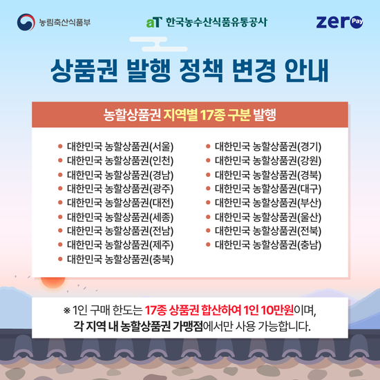 농림축산식품부(이하 농식품부, 장관 송미령)와 한국농수산식품유통공사(이하 aT, 사장 홍문표)는 2일부터 15일까지 ‘대한민국 농할상품권’ 할인판매를 진행한다.