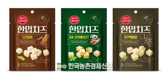 서울우유협동조합(조합장 문진섭)이 홈술 트렌드를 반영해 남녀노소 누구나 호불호 없이 즐길 수 있는 어포 기반의 스낵치즈 신제품 ‘한입치즈 3종’을 출시했다.