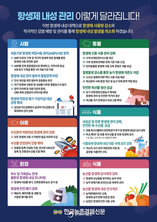 정부는 7개 부처가 공동으로 마련한 제3차 대책을 통해, 사람과 동물이 건강하게 공존하는 환경을 만들 수 있도록 정책적 역량을 집중할 예정이다. 부처 간 협력과 국민 참여를 기반으로 항생제 사용량과 내성률을 단계적으로 감소시켜 내성문제를 관리하고 국민건강을 보호할 계획이다. 나남길 kenews.co.kr