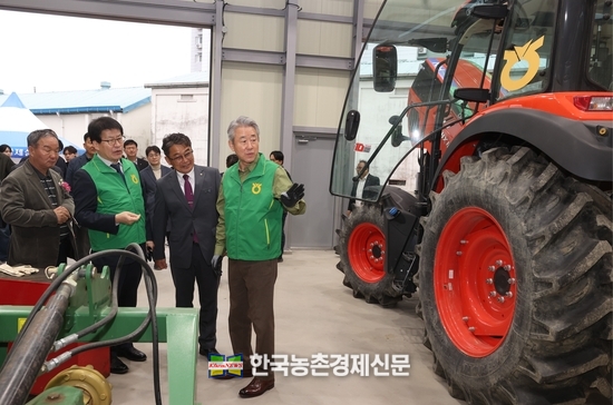 이날 강호동 회장은 자율주행 트랙터와 드론 등 첨단 농기계를 둘러보고, 실시간 모니터링으로 농기계의 이상징후를 파악할 수 있는‘농기계 AI 원격관리 시스템’을 점검했다. 이어 스마트 진단기를 활용해 접촉 불량 상태의 트랙터를 직접 수리 시연하며 현장 기술력도 확인했다.