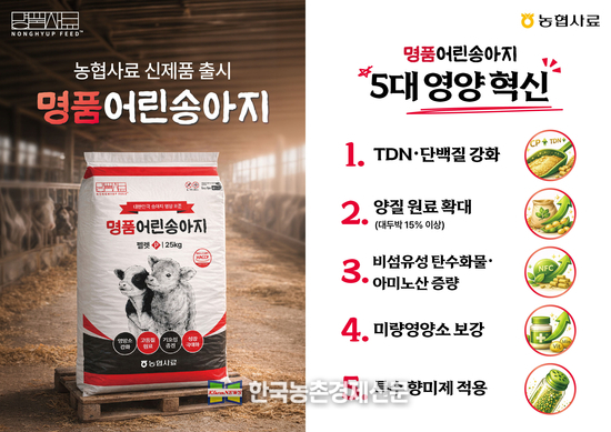 농협사료(대표 최강필)가 2026년 3월 30일, 송아지의 개량 수준을 반영하고 초기 성장을 향상시키기 위한 신제품 ‘명품어린송아지’ 사료를 출시했다.