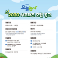 농협중앙회는 스마트 영농 플랫폼‘NH오늘농사’홍보와 청년층과의 소통 강화를 위해 ‘NH오늘농사 2030 서포터즈’를 모집한다고 밝혔다. 이번 서포터즈는 농업·농촌에 대한 이해를 높이고, 청년 세대의 참신한 아이디어를 바탕으로 디지털 농업 서비스 확산을 도모하기 위해 운영된다. 공개 모집을 통해 총 50명을 선발하며, 4월 말 발대식을 시작으로 9월까지 약 5개월간 활동할 예정이다. 지원 대상은 농업·농촌에 관심 있는 2030세대로, 농업 종사자· 주말농장 참여자·가족 농사 참여 경험자·농사 동아리 회원 등을 우대한다. 접수 기간은 19일까지이며, NH오늘농사 앱 내 구글폼을 통해 지원할 수 있다. 선발된 서포터즈는 ▲‘NH오늘농사’온라인 홍보(SNS 콘텐츠 기획·제작) ▲관련 주요 행사 참여 ▲농촌 일손돕기 등 다양한 활동을 수행한다. 이를 통해 청년층의 시각에서 농업의 가치를 알리고 디지털 영농 활성화에 기여할 것으로 기대되며 수료자에게는 활동 지원금이 지급되고, 우수 활동자에게는 디지털 디바이스를 시상할 예정이다. 한편‘NH오늘농사’는 영농일지, 농작업 관리, 농산물 시세, 면세유 정보 등 다양한 기능을 제공하는 스마트 영농 플랫폼으로, 농업인의 편의성과