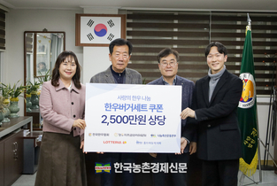 전국한우협회(회장 민경천), 나눔축산운동본부(공동대표 안병우, 오세진), 롯데GRS(대표이사 이원택)는 2,500만원 상당의 롯데리아 한우불고기버거세트 쿠폰을 홀트아동복지회에 기탁했다. 이날 전달식에는 민경천 전국한우협회장과 나눔축산운동본부 이종원 사무총장, 롯데GRS 이혁중 마케팅부문장, 홀트아동복지회 손윤실 본부장 등이 참석해 나눔의 의미를 더했다. 이번 나눔 행사는 한우농가가 조성하는 한우자조금을 재원으로, 나눔축산운동본부 및 롯데GRS와 공동으로 추진하는 사회공헌사업이다. 전달된 롯데리아 한우불고기버거세트 쿠폰은 홀트아동복지회에 지정 기탁되어, 아동·청소년들에게 영양가 높은 한우버거를 맛볼 수 있는 기회를 제공할 예정이다. 홀트아동복지회 손윤실 본부장은 “연말에 따듯한 선물을 주시는 뜻깊은 사업에 감사드린다”고 전했으며, 나눔축산운동본부 이종원 사무총장과 롯데GRS 이혁중 마케팅부문장은 “대한민국의 미래인 아동·청소년들이 건강하게 성장할 수 있도록 지원활동을 확대해 나가겠다”고 말했다. 민경천 전국한우협회장은 “앞으로도 한우농가와 나눔축산운동본부가 함께 한우를 통해 지역사회에 공헌하고 나눔문화를 확산하여 축산업의 공익적 가치를 살릴 수 있도록 더욱 앞