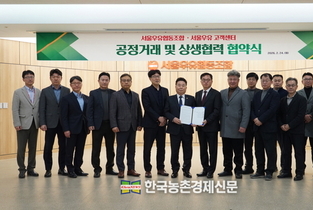서울우유협동조합(조합장 문진섭)은 대리점과의 동반성장을 강화하기 위해 서울우유 고객센터(회장 이승형)와 '공정거래 및 상생협력' 협약을 체결했다. 2월 24일 본조합 강당에서 열린 협약식에는 서울우유 문진섭 조합장, 사혁 상임이사를 비롯해 이승형 전국고객센터협의회장, 서창훈 가공품고객센터협의회장, 각 지역 고객센터 대표 등 다수 관계자들이 참석했다. 서울우유는 지속 가능한 경영과 사회적 책임 실현을 위한 ESG(환경·사회·지배구조) 경영 활동의 일환으로 서울우유 고객센터와 공정거래 및 상생협력을 지속 전개하고 있으며, 올해는 우유고객센터 1,021개소 및 가공품고객센터 135개소와 협약을 체결했다. 이번 협약을 통해 서울우유협동조합과 고객센터는 계약의 공정성, 법 위반 예방 및 준수, 상생협력 등을 추진하고, 영업경쟁력 개선을 위한 실질적 방안을 검토하는 등 동반성장을 위한 다양한 방안 모색에 협력하기로 다짐했다. 특히, 올해는 수입 유제품 관세 철폐가 본격화됨에 따라 시장 경쟁이 더욱 치열해질 것으로 전망되는 만큼 조합과 고객센터의 협력은 선택이 아닌 필수이며, 이번 협약은 형식적 선언이 아닌 공동의 책임과 방향을 재확인하는 실질적인 약속이라는 점을 거듭