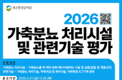 축산환경관리원(원장 문홍길)은 3월 27일부터 5월 26일까지 ‘2026년 가축분뇨 처리시설 및 관련기술 평가 계획’을 공고하고, 신청접수는 4월 27일부터 진행한다고 밝혔다. 이번 평가는 서류, 현장, 발표 및 종합평가 순으로 진행되며 기업 역량, 기술 우수성 및 경제성 등을 종합적으로 평가할 계획이다. 종합점수가 70점 이상인 업체의 기술정보는 축산환경관리원 누리집을 통해 정보를 공개하며, 책자로 인쇄되어 지자체, 생산자 단체 및 축산업 종사자 등에게 배포될 예정이다. 평가대상은 ‘공동 및 개별규모 가축분뇨 처리시설’과 ‘가축분뇨 처리기술’, ‘악취저감 및 제어기술’ 및 ‘악취측정 ICT 기계·장비’ 관련기술이다. 이번 평가에서 악취측정 ICT 기계·장비 평가는 기존 평가 대비 측정데이터 신뢰성 및 안정성 확보, ICT 측정장비 내구성 확보, 경제성 등이 평가될 수 있도록 평가 항목을 개정하여 평가 배점을 조정하였다. 특히, 올해는 우수한 기술을 보유하고 있는 많은 업체의 참가 독려를 위해 업체를 직접 방문하는 등 사전 홍보를 실시하였다. 공고 세부사항은 축산환경관리원 누리집 알림 소식(공지사항)에서 확인할 수 있다. 신청 접수기간은 4월 27일(월)부터